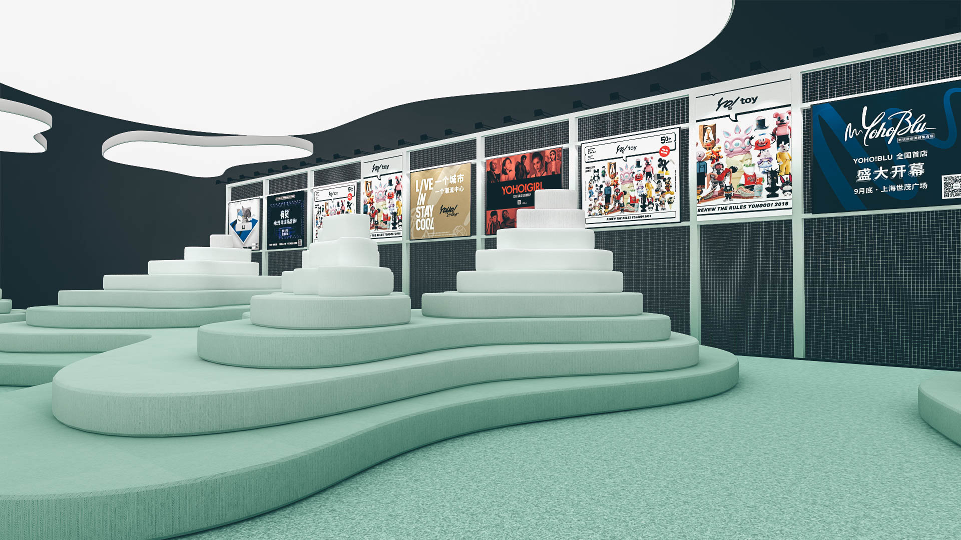 For Shanghai’s YoHood 2019, created immersive installations and the identity of the festival. Both of these assets branded the event